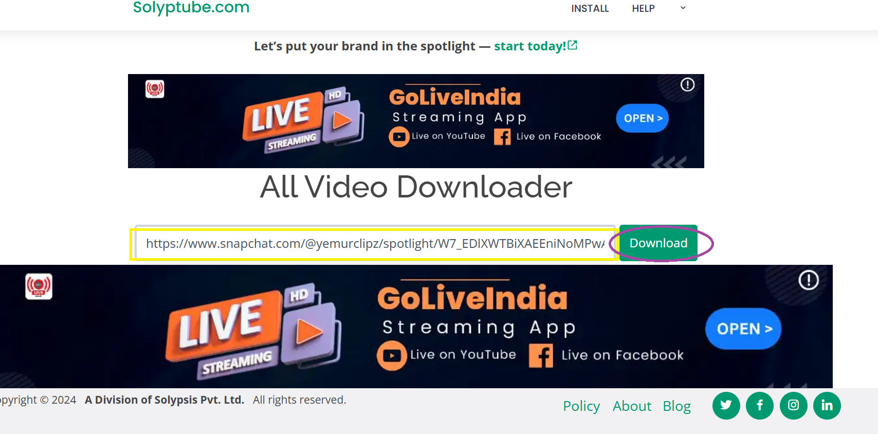 Solyptube is an all-in-one social media video downloader that supports platforms like Snapchat, Facebook, YouTube, Instagram, X (Twitter), and more. Its simple, clean interface lets you paste a link and quickly download content without ads, watermarks, or restrictions.