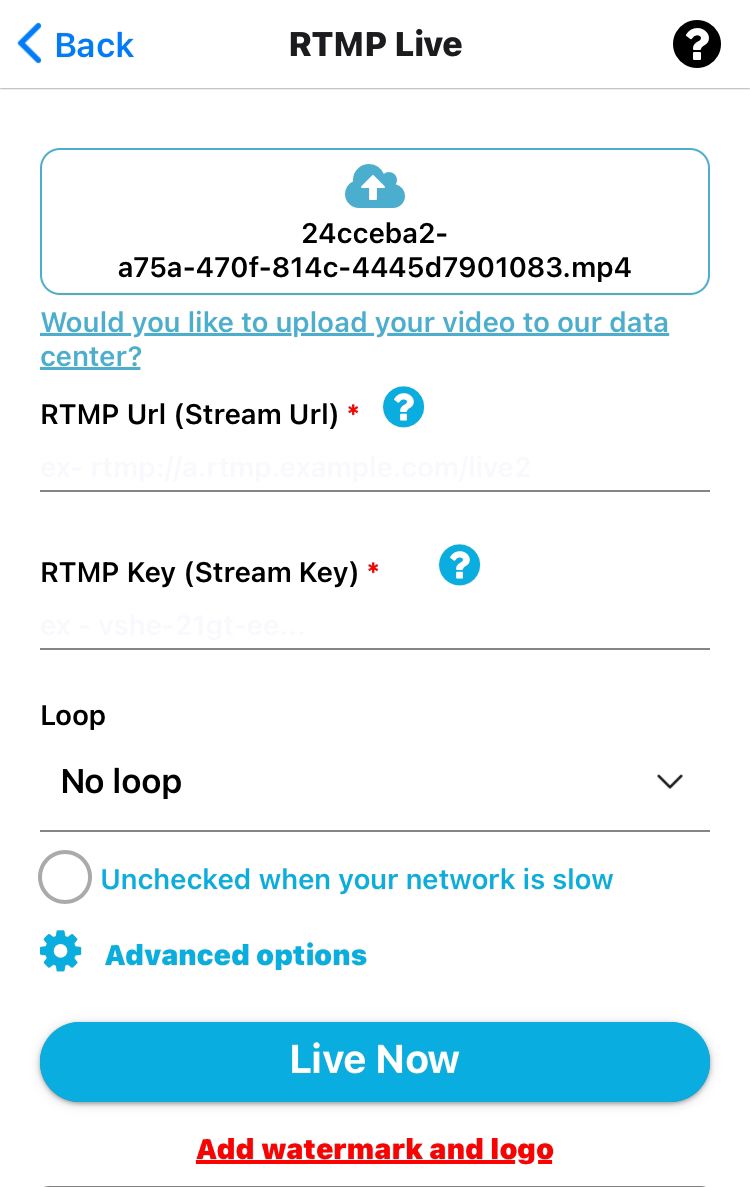 You can also add a title and description for your livestream at this stage. If you want your video to loop continuously, you can enable the loop option as well.