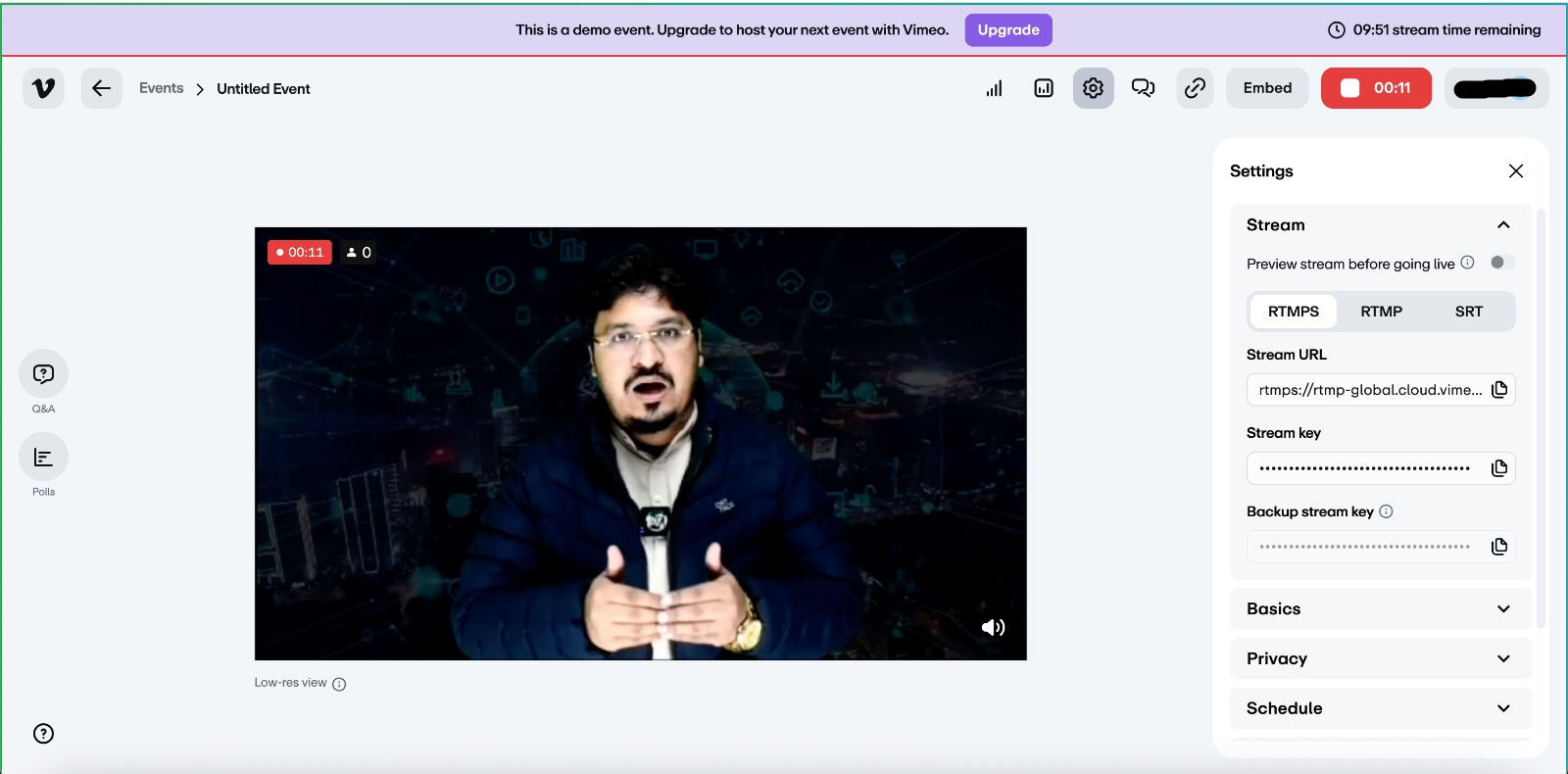 Q1. Do I need OBS to go live on Vimeo using GoLiveIndia?