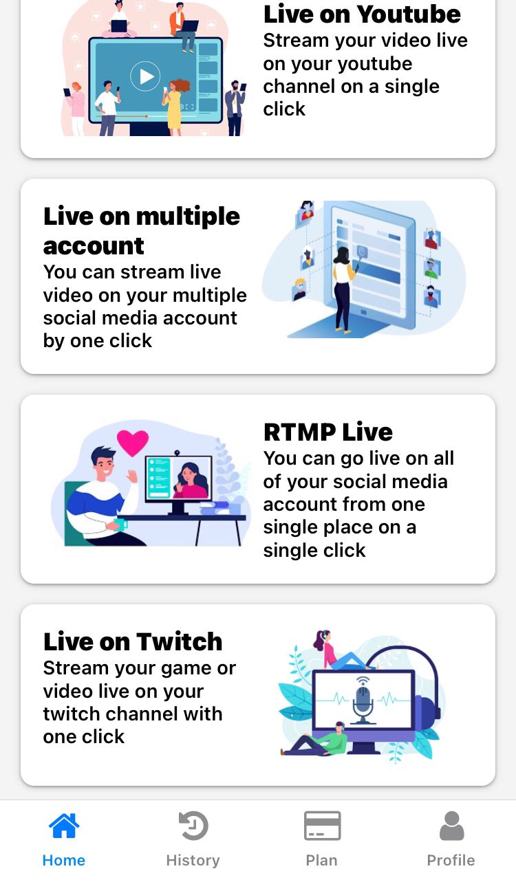 Stream live in real-time using your mobile’s front or rear camera. Ideal for events, classes, Q ;A sessions, or spiritual discourses.