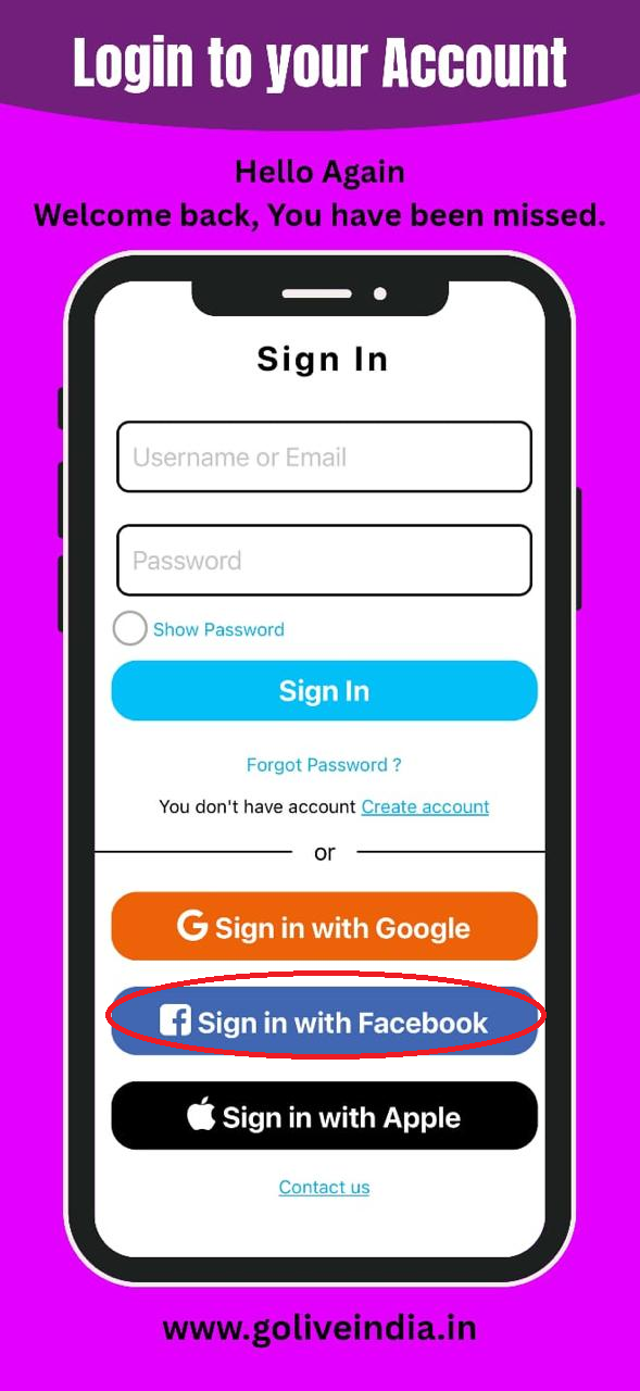Logging into the GoLiveIndia app using your Facebook account is fast and convenient. Whether you are a new user or returning to stream live videos, this step-by-step guide will help you link your Facebook account to GoLiveIndia in just a few taps.